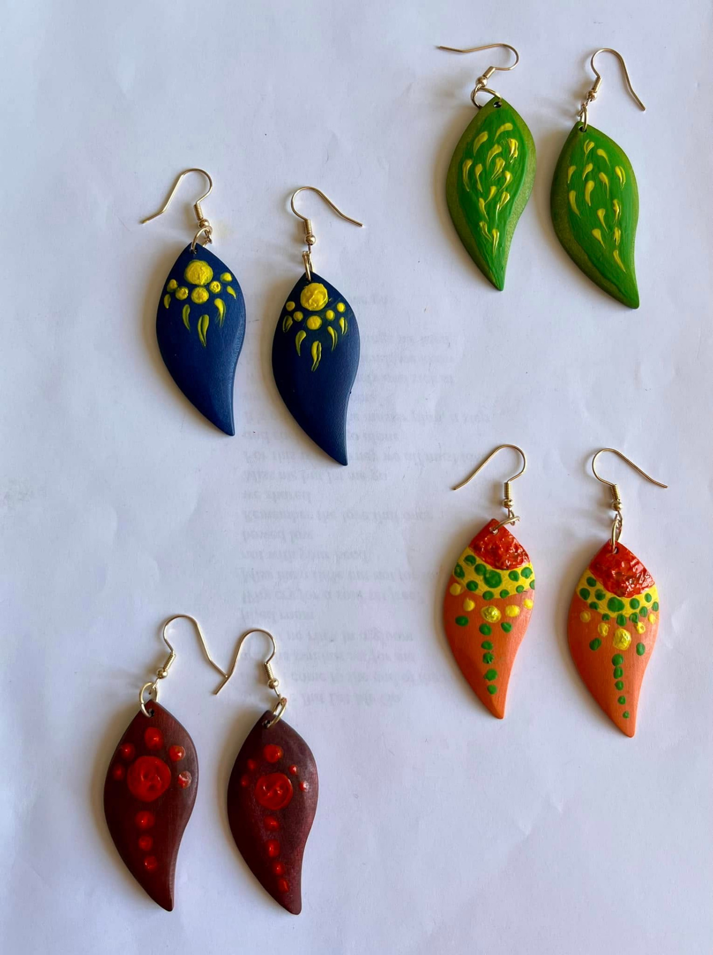 14. Комплект обици от дърво в различни цветове, ръчно релефно рисувани.